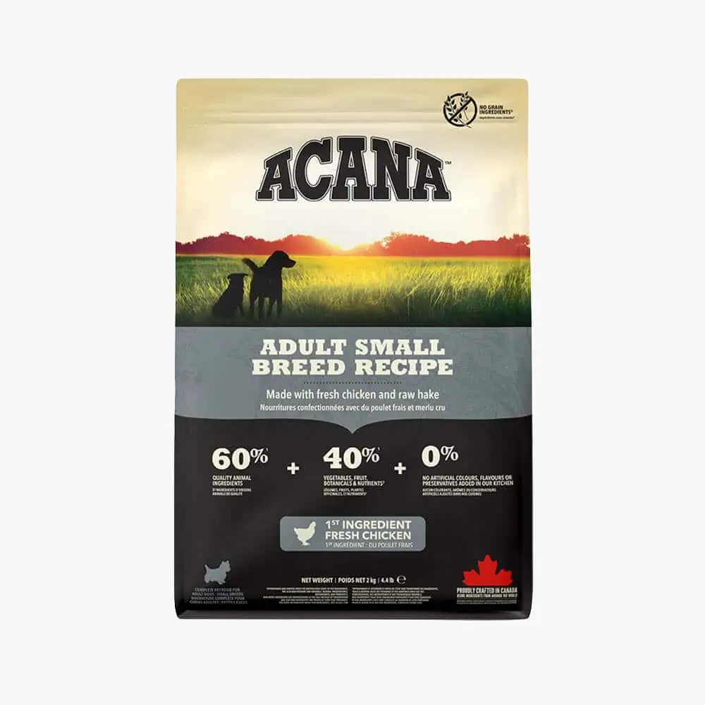 ACANA Adult Small Breed Recipe is thoughtfully crafted to nurture your small breed dog with a rich and diverse array of whole animal ingredients, ensuring they get the protein and energy they need for a happy, healthy life.