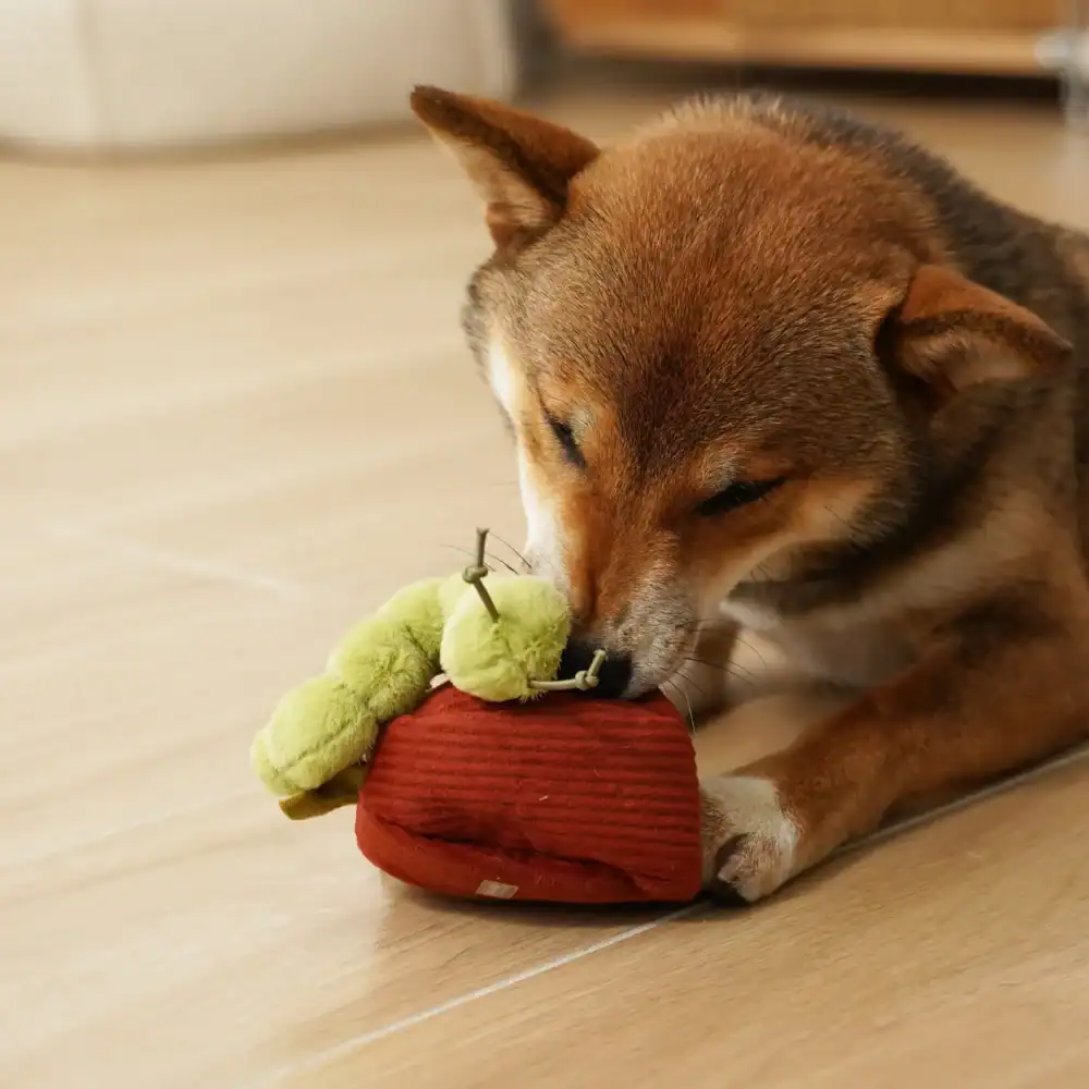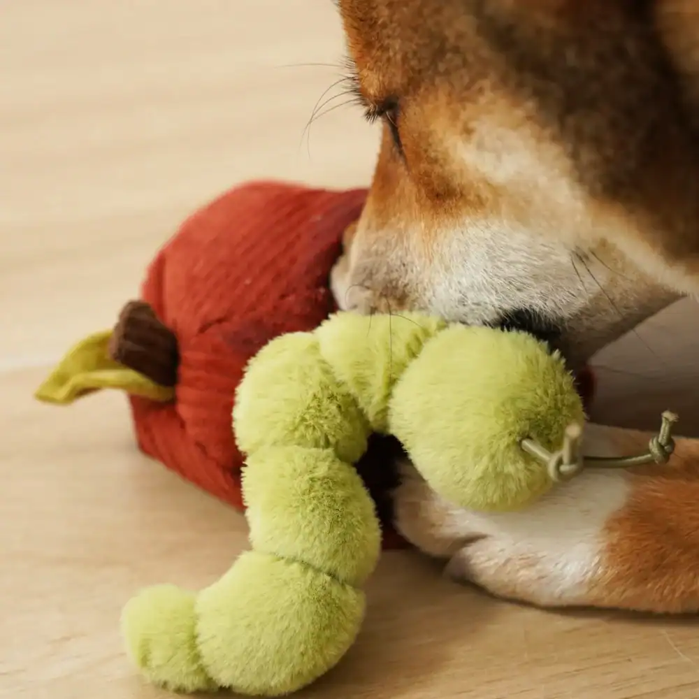 The apple shell can also be used to hide treats, making it ideal for nosework and mental stimulation. The caterpillar features a squeaker for extra excitement — a combination no pup can resist!