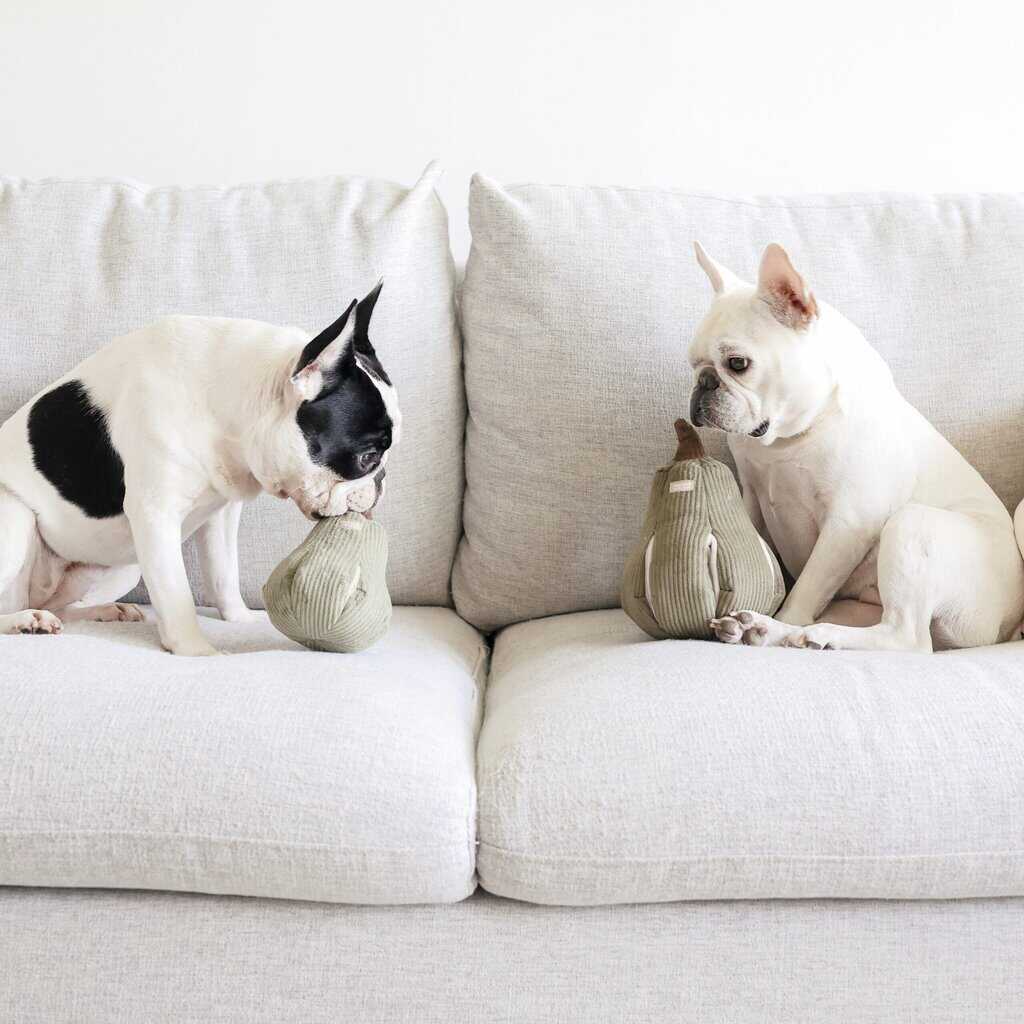 The Butternut Enrichment Dog Toy offers a moderate challenge for dogs with six sideways-opening treat pockets that encourage natural foraging and problem-solving.