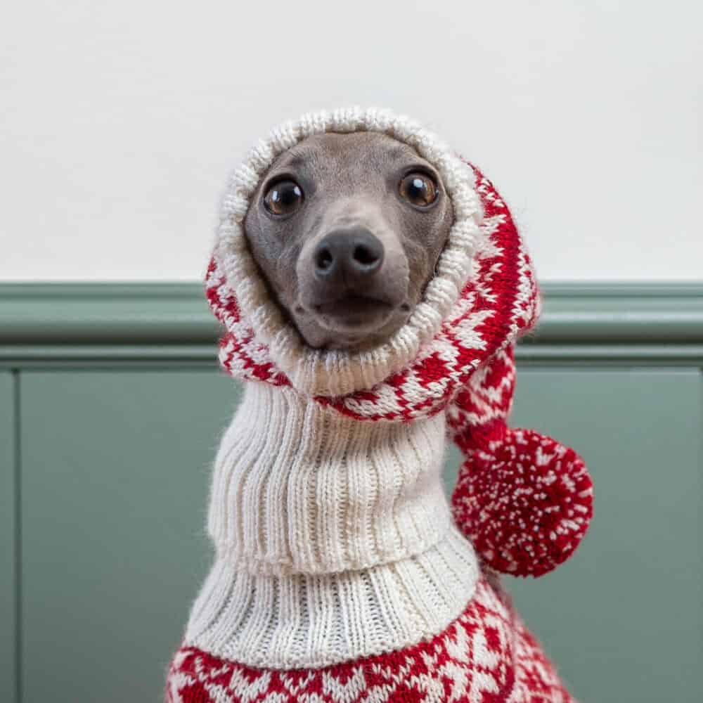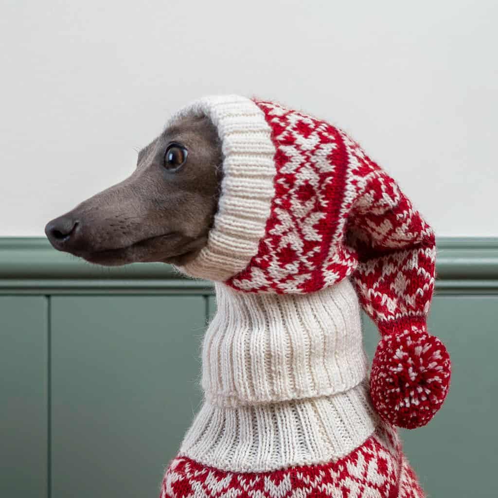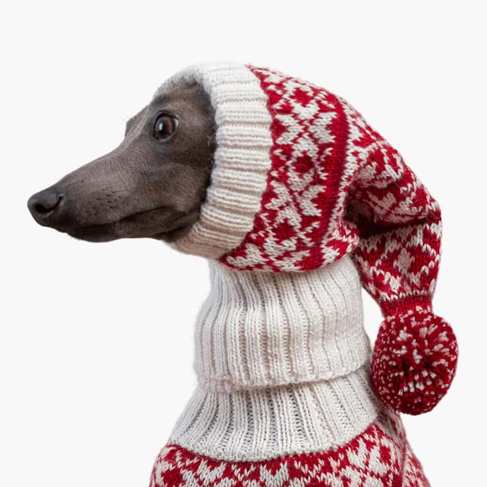 This cozy alpaca hat adds just the right dose of festive cheer, complete with delicate snowflakes and that signature red hue. Whether worn solo or paired with the matching sweater, it’s the ultimate holiday statement for pups who love being the center of the (Christmas) story.