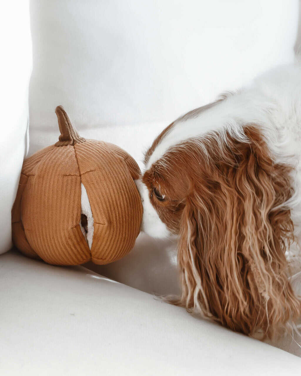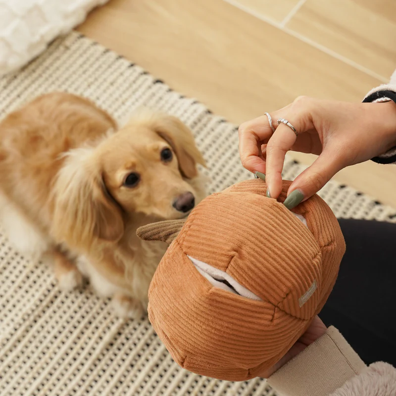 Cinderella pumpkin features 6 treat pockets that open sideways as the snoot make its way in! This is a large pumpkin recommended for M-XL size pets. It’s the perfect way to turn snack time into an engaging challenge that supports mental health and reduces boredom.