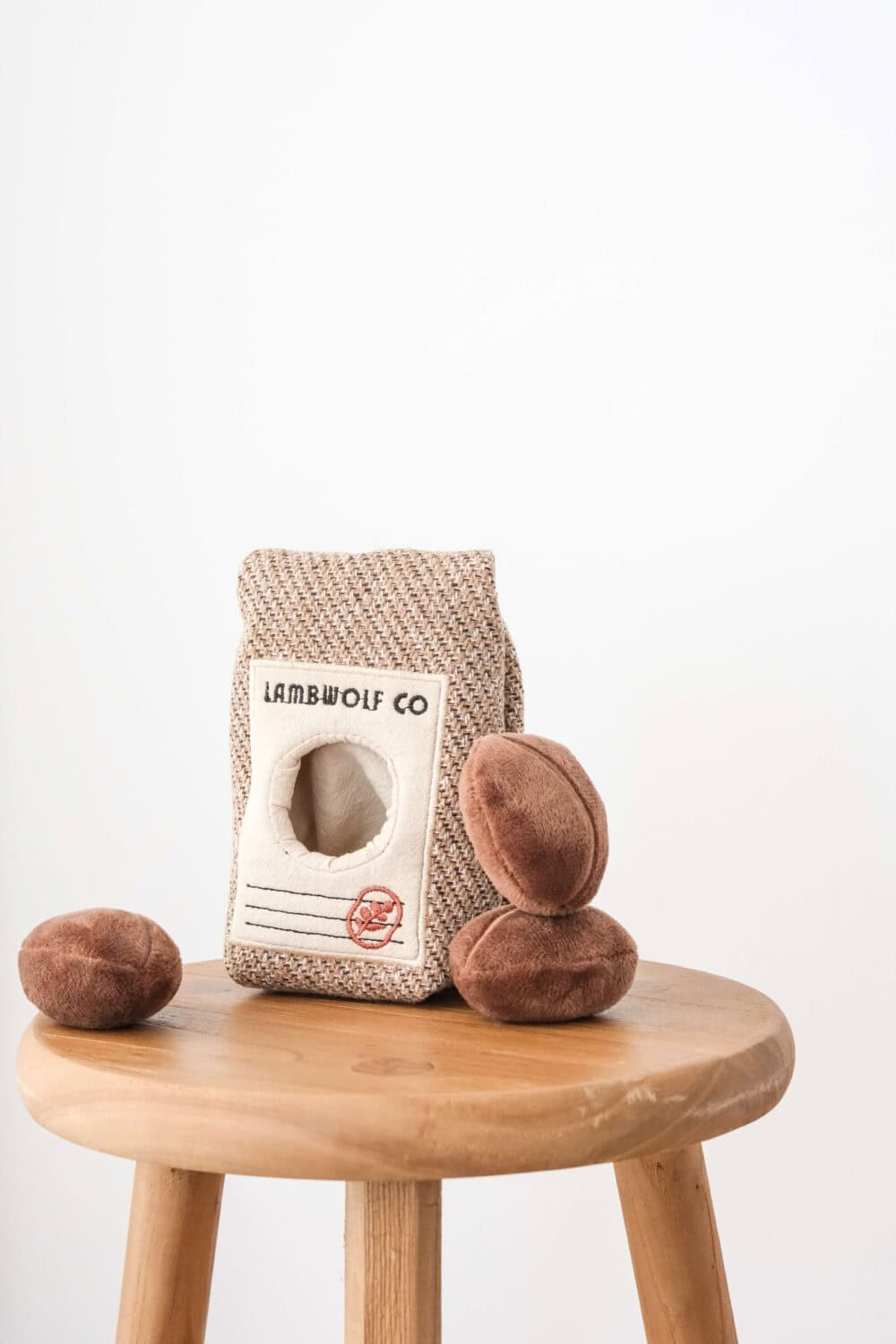Bring the fun of the café to playtime with this burrow Coffee Beans! This enrichment toy features three squeaky coffee beans nestled inside a textured pouch, creating the ultimate nosework challenge for your pup.