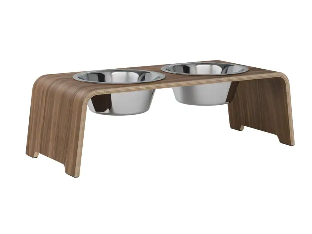 The DogBar®, Fedding Station combines timeless design with practical functionality. Crafted from solid laminated wood with a real wood veneer finish, it brings a refined, furniture-like look to your home while offering a stable and durable feeding solution.