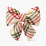 Dress your pup in timeless holiday style! This charming sailor-style bow features a festive plaid pattern in warm beige, red, and green tones — perfect for seasonal celebrations, family photos, or everyday cuteness. The tapered tails add an elegant finish, while dual elastic loops on the back ensure a secure, upright fit on most standard-width collars — no more floppy bows!