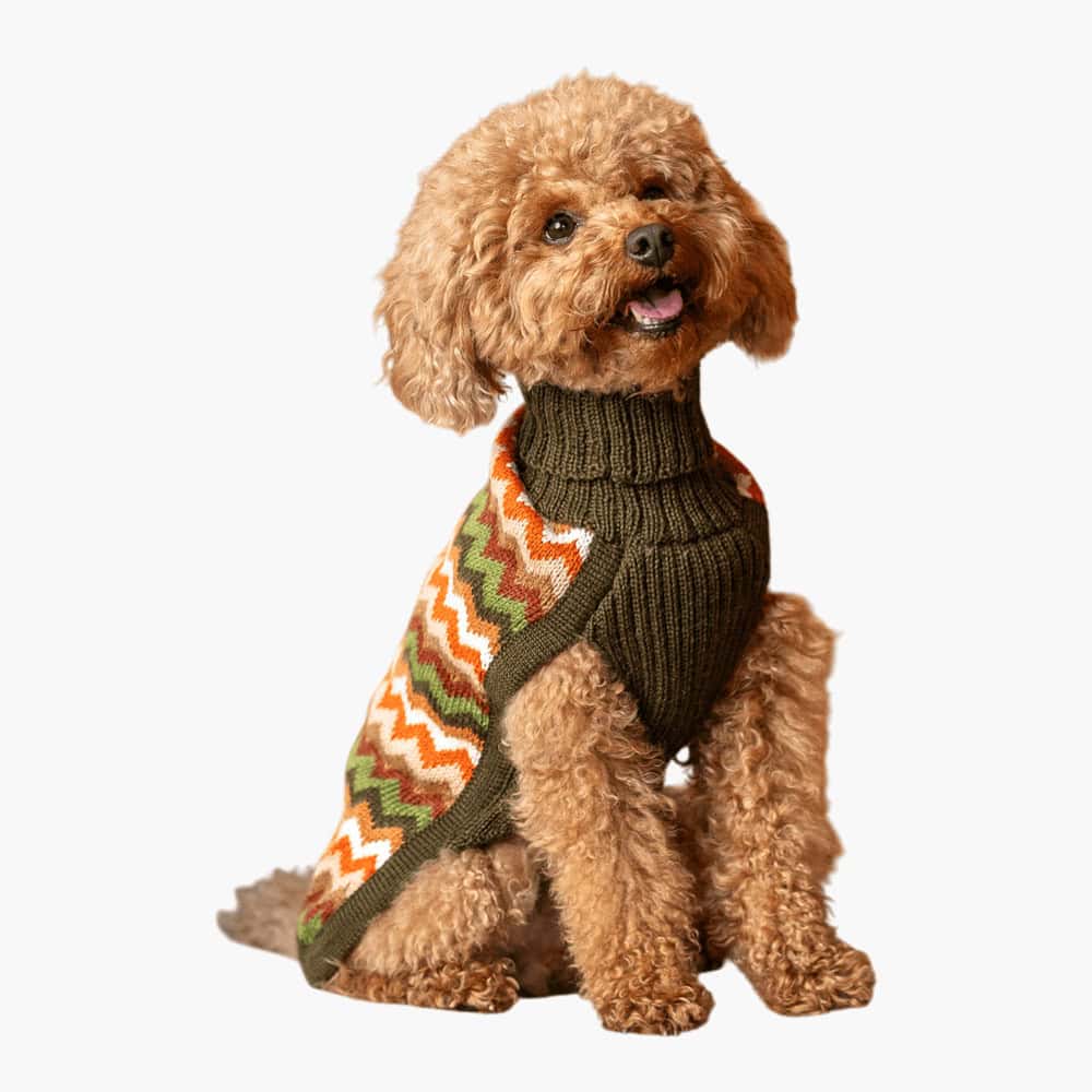 Nature’s palette, your pup’s runway. Inspired by forest floors and flickering leaves, the Forest Chevron Knit Alpaca Dog Sweater combines a bold zigzag pattern with rich, earthy greens. Perfect for pups who love chasing leaves — and turning heads.