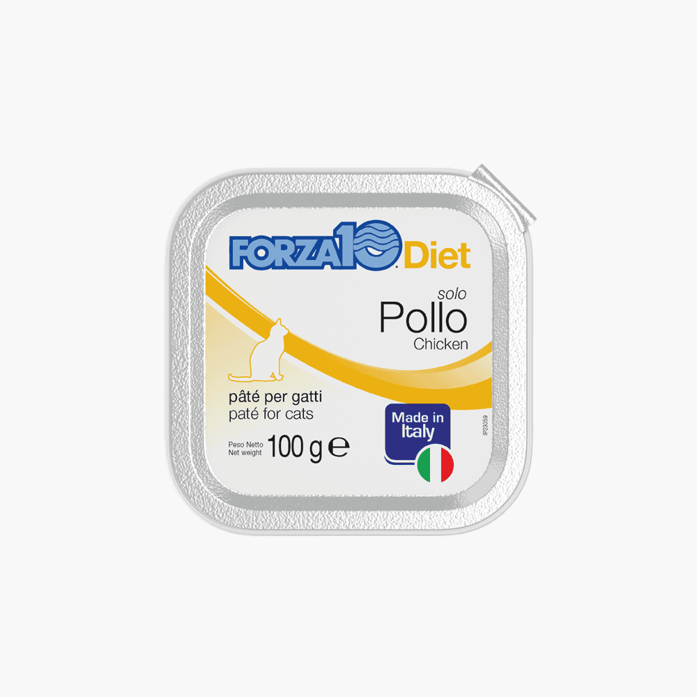 Complementary wet food for adult cats, formulated with a single source of animal protein (chicken).