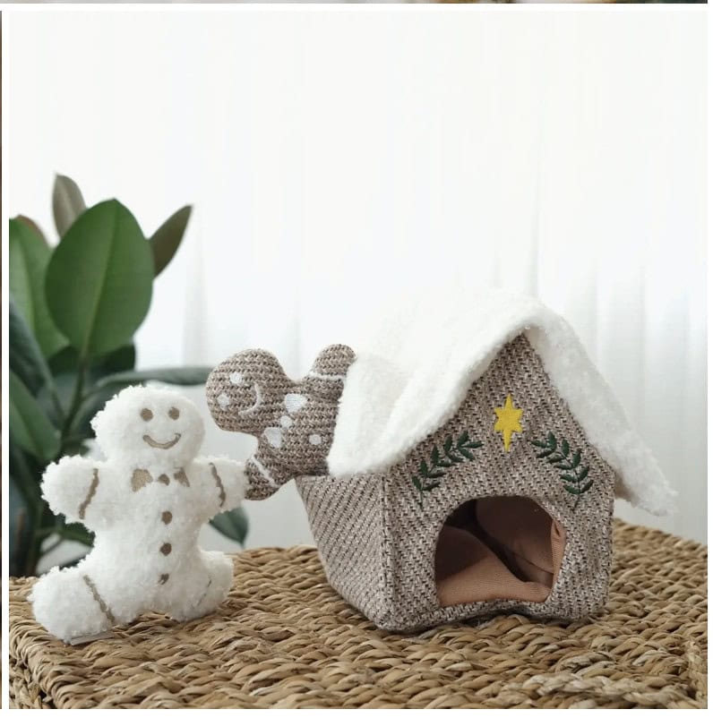 Bring the holiday spirit into your home with a charming gingerbread house complete with two adorable gingerbread men. Hide tasty treats inside the house and watch as your dog eagerly snuffles, nudges, and explores, using their keen sense of smell to discover hidden goodies.