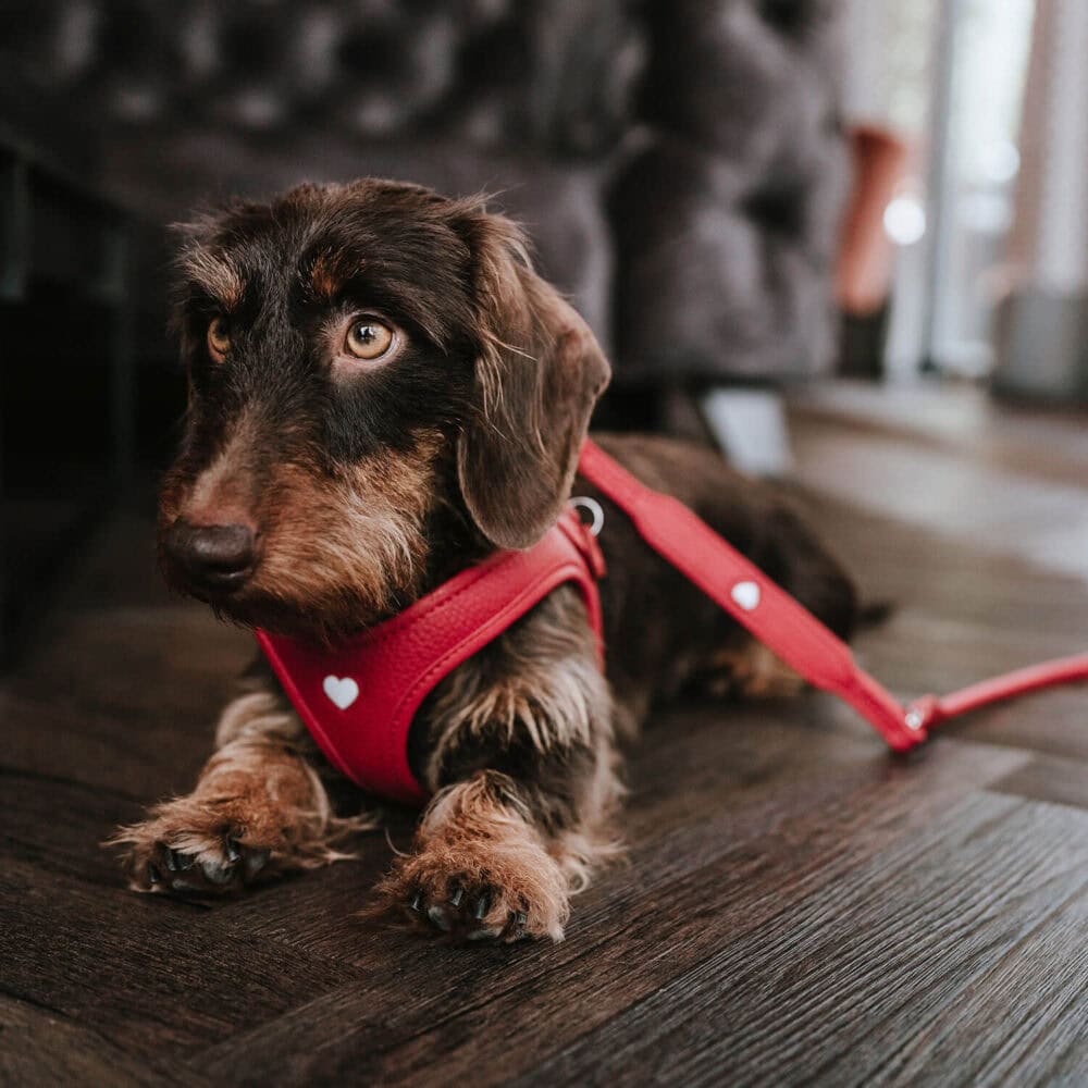 The exclusive LOVE harness combines premium comfort with heartfelt design. Made from high-quality cowhide, it fits softly and comfortably like a second skin, while the breathable, padded mesh lining ensures maximum comfort.