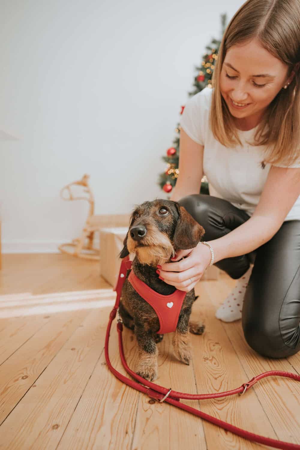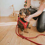 Thanks to the Easy Step-In design, the harness is quick to put on—no pulling over the head. A single click fastener and adjustable Velcro closure provide a secure, custom fit. The hand-sewn heart on the chest adds a charming, handcrafted touch, made with care in the Hunter manufactory in Bielefeld.