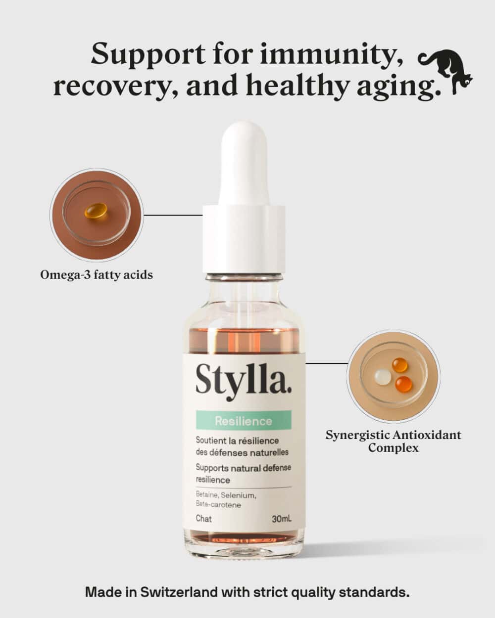 Stylla Resilience for Cats is a premium supplement formulated to support your cat’s natural defenses and overall vitality. Its amino acid–based formulation helps strengthen the immune system, provide antioxidant protection, and promote long-term well-being.