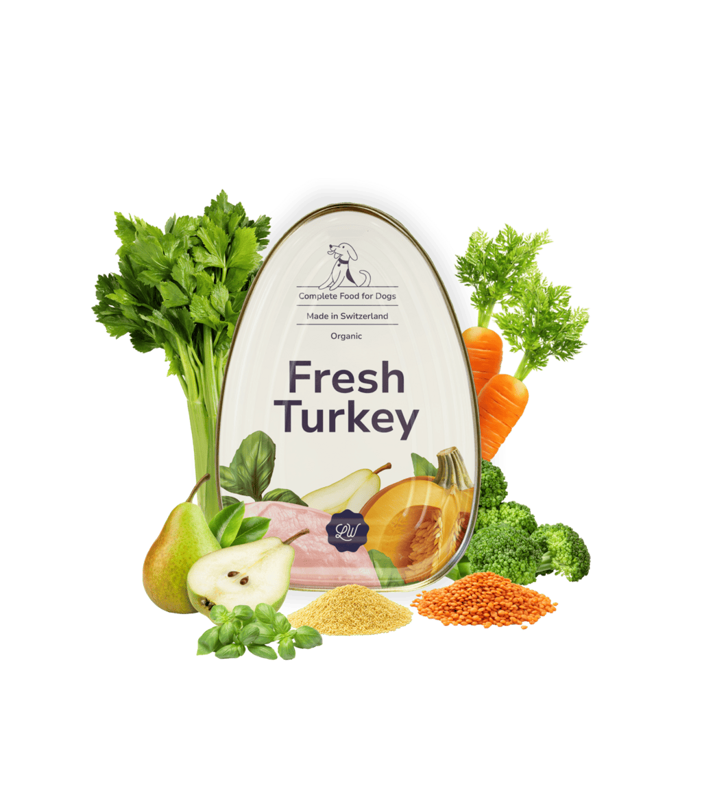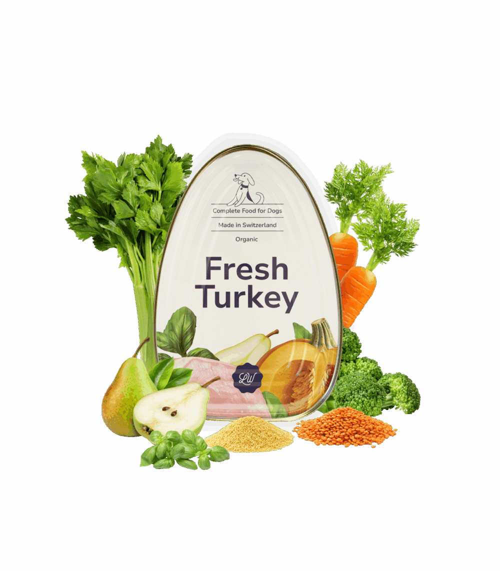 It all begins with the origin of the turkey — ethically raised on the certified organic Swiss farm Wendelinhof. From there, each ingredient is carefully chosen to complement it: pumpkin, pear, broccoli, sage, and more. The result is a recipe that’s nourishing, comforting, and beautifully balanced. It’s no surprise this is one of our all-time favorites — loved by dogs (and their humans) year-round.