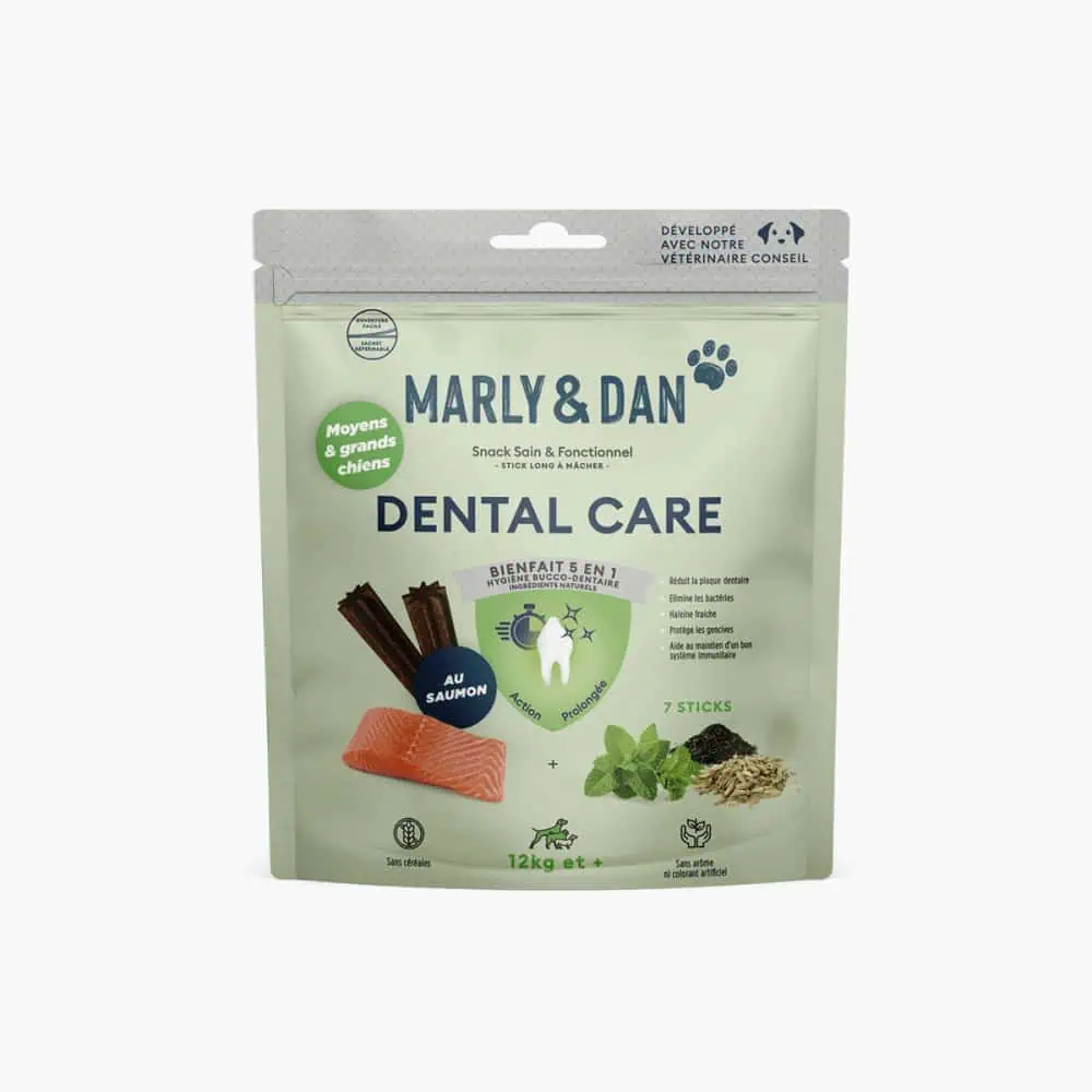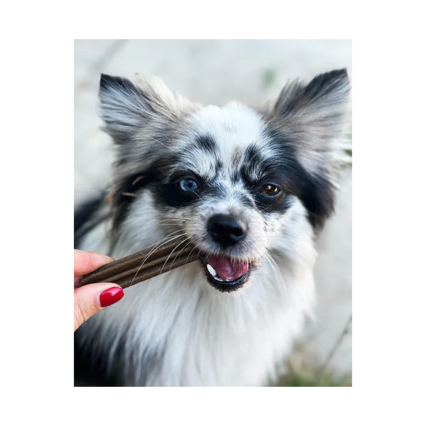These natural dental sticks support your dog’s oral hygiene by reducing plaque through mechanical action.