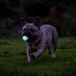 Its hollow, mesh-like construction improves airflow for easier breathing during play, especially for short-nosed breeds. After just minutes under a bright light, the ball glows green for early morning or nighttime fetch—no batteries needed.