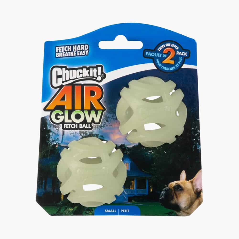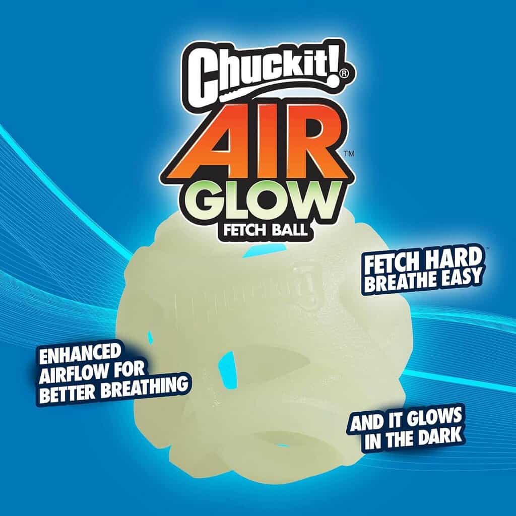 Fetch Toys The Chuckit! Max Glow Air Fetch Ball combines the breathable design with the glow-in-the-dark feature.