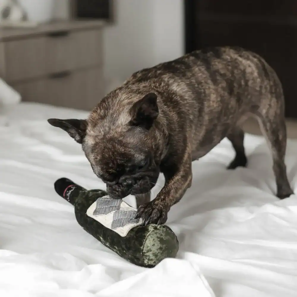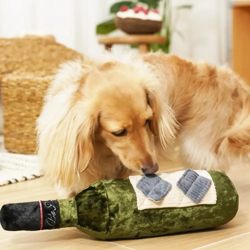 Super squeaky It’s time to let your pup pour you a glass of wine! Merlot Snuffle Toy is a life-size wine bottle designed to make treat time extra exciting. Featuring multiple snuffle pockets, it’s perfect for hiding kibble or freeze-dried bite-size rewards, turning playtime into a rewarding nose-work adventure.