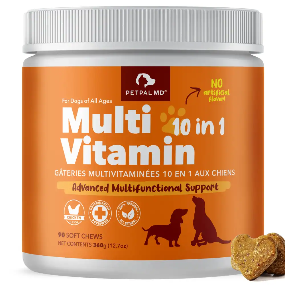 Support your dog’s overall health with a complete daily formula. This 10-in-1 multivitamin is made with a scientifically balanced blend of essential vitamins, minerals, and nutrients—all in one convenient soft chew.