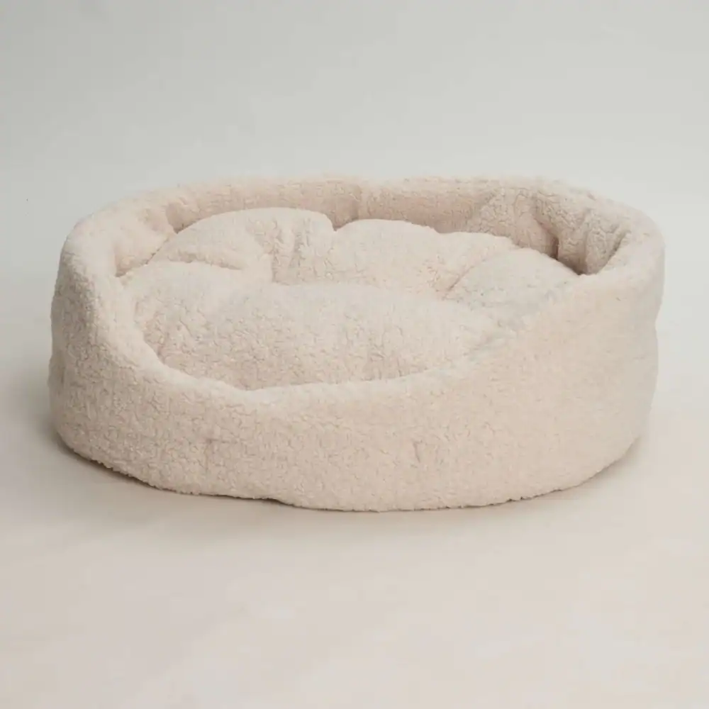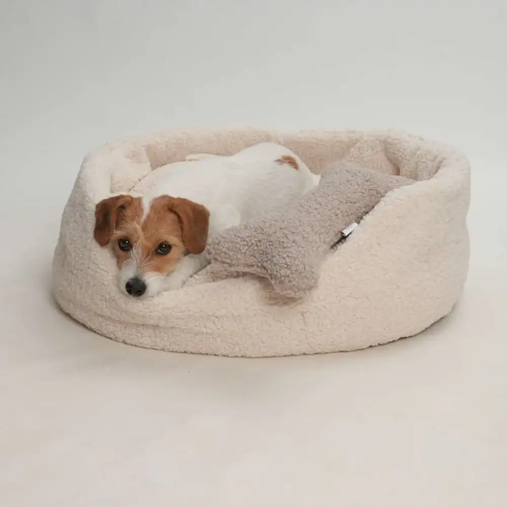 The Paddy Cream Dog Basket combines teddy-bear softness with modern sustainability. Made from 100% recycled PET bottles, its bouclé-style fabric is warm, cuddly, and perfect for colder days.