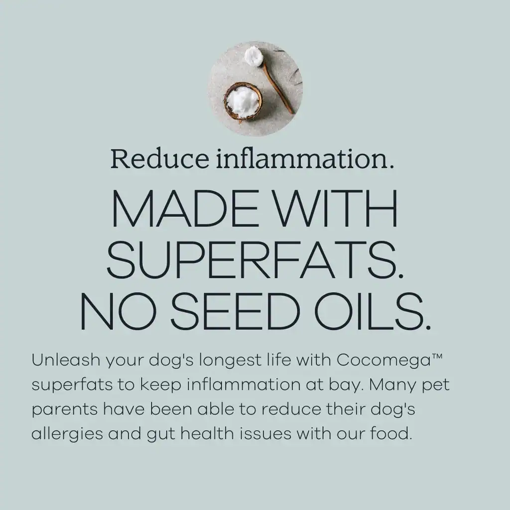 • SUPERFATS, NO SEED OILS: Unleash your dog’s longest life with Cocomega™ superfats backed by research to keep inflammation at bay;