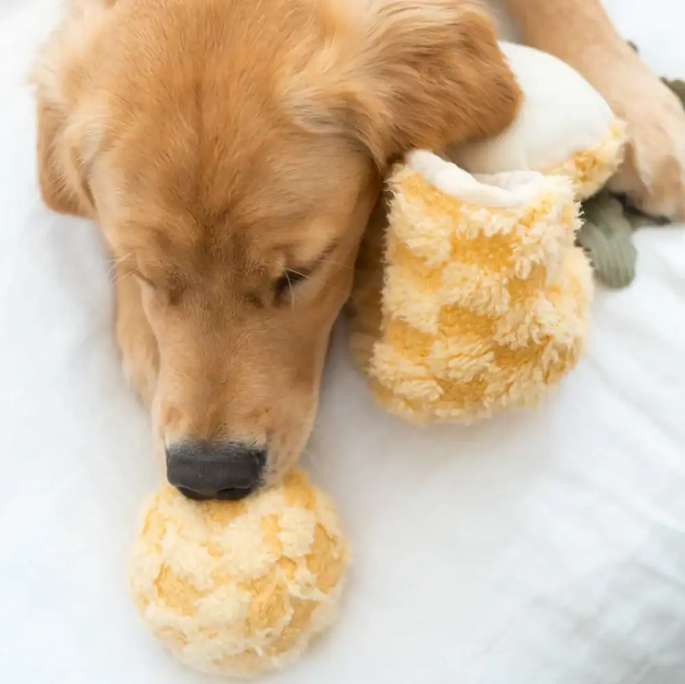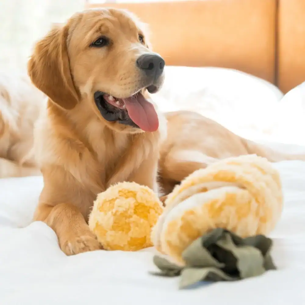 Fetch Toys Bring some tropical vibes to playtime with our Pineapple Pop! This vibrant, plush, and crinkly pineapple is packed with a large teddy plush-wrapped POP ball, perfect for hiding treats and turning play into a fun challenge. The pineapple cap contains multiple squeakers, while the green leaves on top are sure to catch your pup’s attention.
