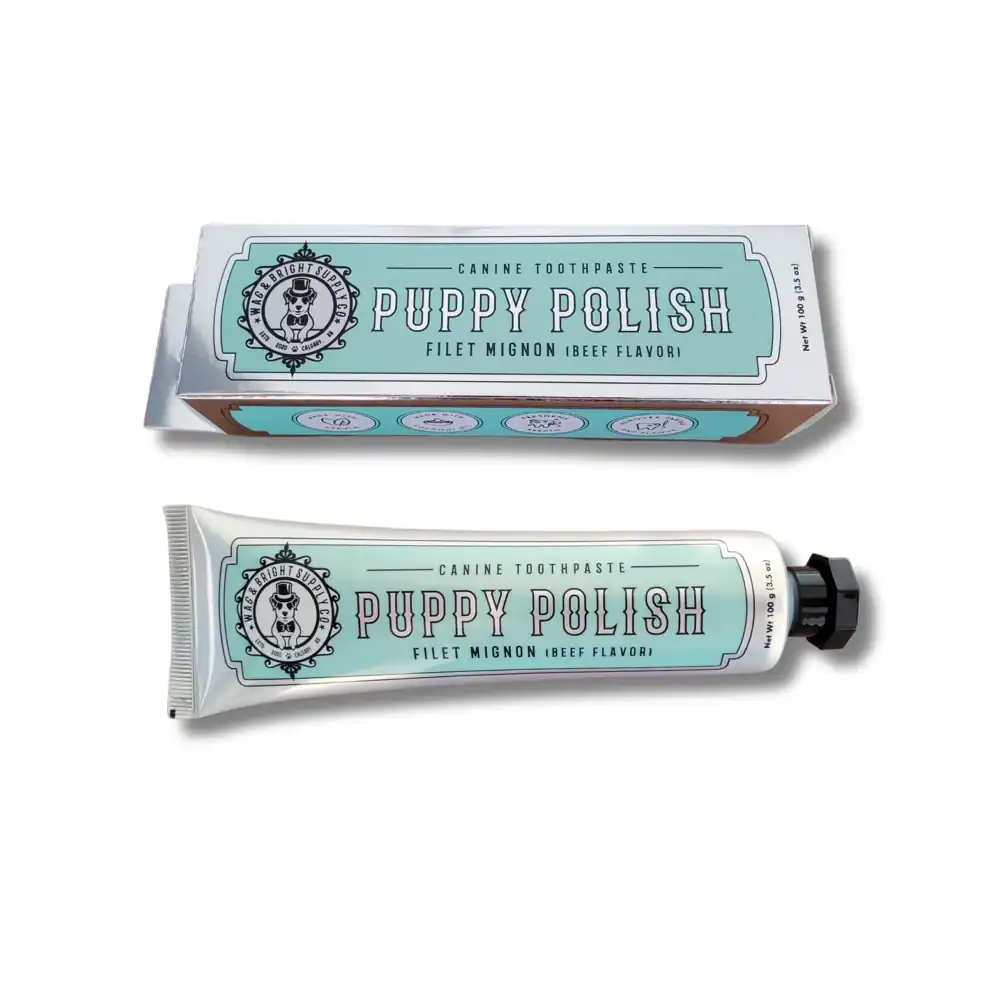 Discover the ultimate in canine oral care with Puppy Polish Toothpaste – Filet Mignon (Beef), crafted with natural ingredients for a healthy, kissable smile. This lab-tested formula ensures fresh breath while providing a delicious brushing experience that dogs love.