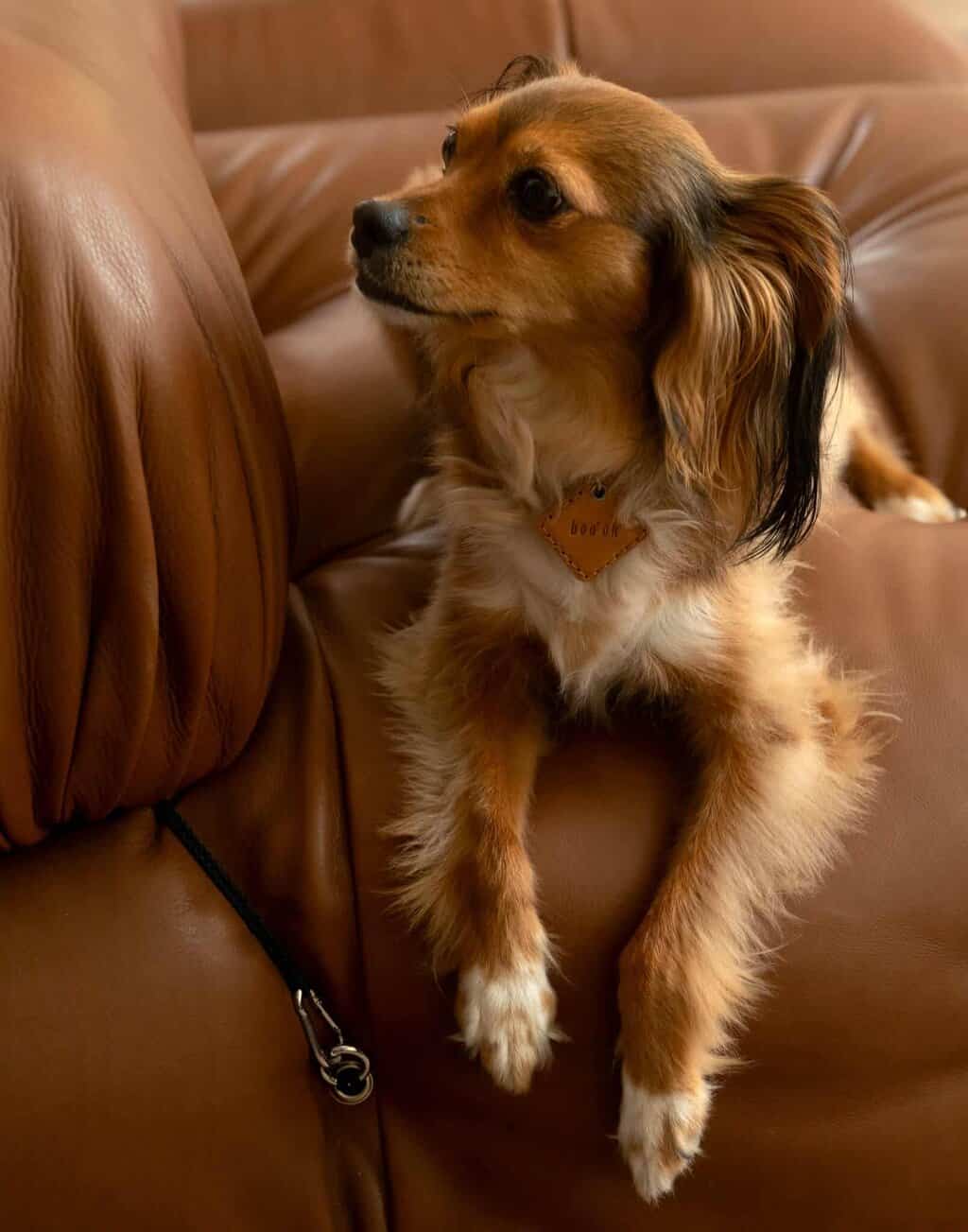Give your beloved canine the perfect blend of sophistication and durability with The Ray Dog Collar. Crafted from luxurious Italian Buttero leather, renowned for its supple feel and enduring beauty, this collar exudes timeless charm. Designed for both style and comfort, it features a custom rayon silk rope that adds a touch of refinement while ensuring a gentle fit around your dog’s neck.