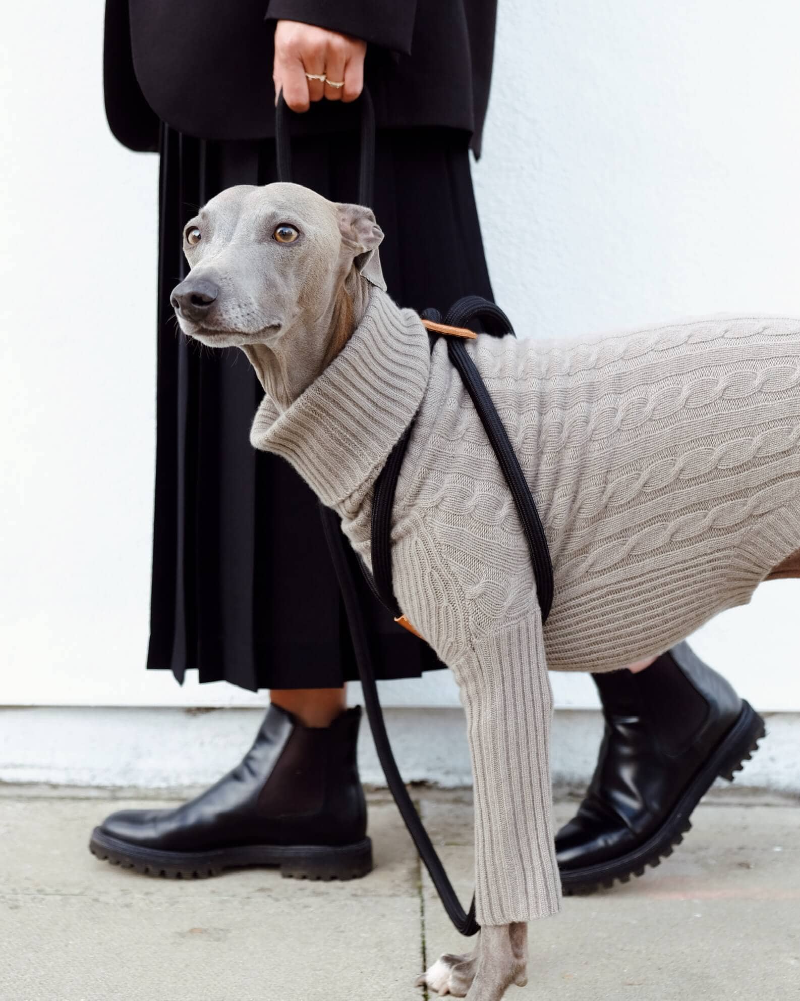 • Using a single piece of padded interwoven synthetic silk fiber rope and a series of Buttero leather features, brand has designed a system that will allow you to attach and detach your pet’s harness in a fluid movement.