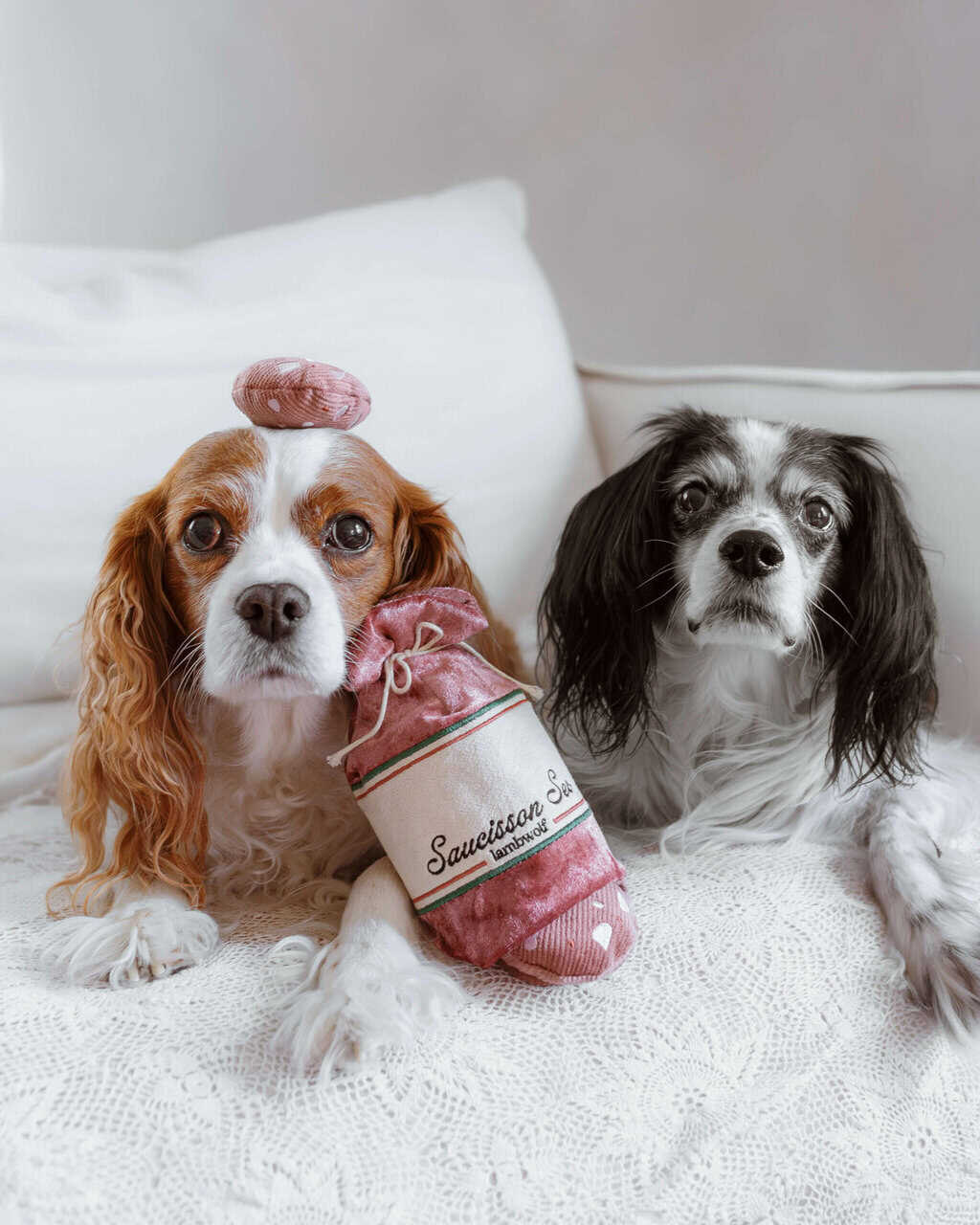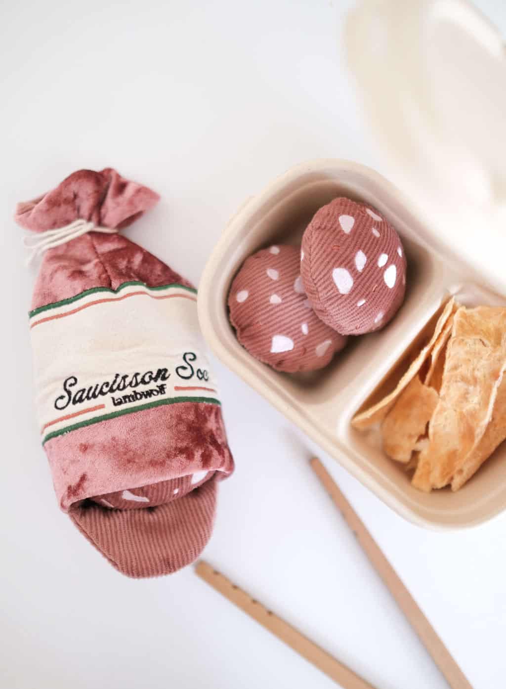 Treat your furry friend to playtime that’s as engaging as it is rewarding. Saucisson Sec includes three squeaky sausage pieces tucked inside a crinkly outer casing, designed to keep curious pups busy and entertained.