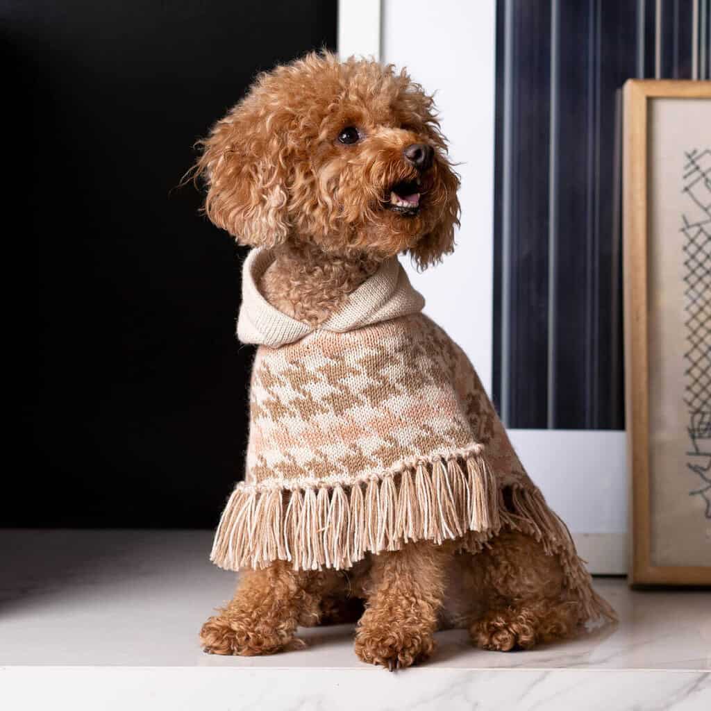 Wrapped in charm — this poncho is a timeless nod to tradition, reimagined in soft, cozy hues for the modern pup. With its classic houndstooth pattern and an adorable hood, it’s made for sweet strolls and even sweeter moments.