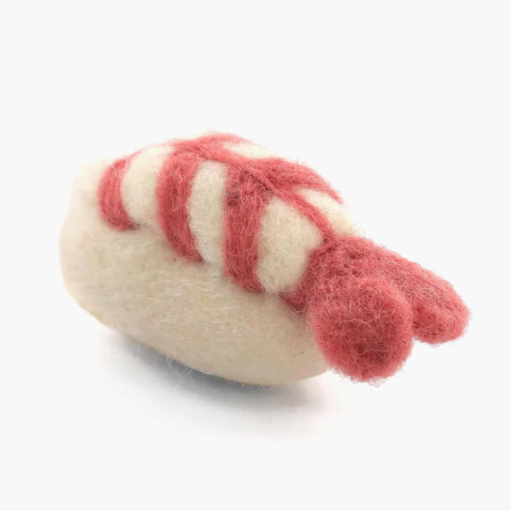 This adorable Prawn Nigiri Cat Toy features a felted shrimp tail resting on a soft bed of wool “rice,” infused with premium organic catnip to keep your kitty entertained for hours. Perfect for batting, carrying, and gentle chewing, it encourages play and stimulates your cat’s natural hunting instincts.