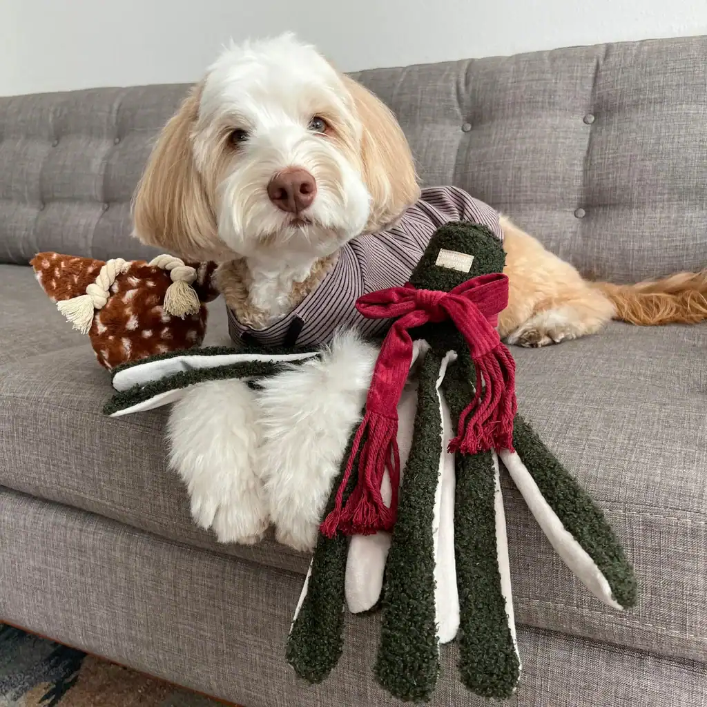 Crackle Meet Tako, new toy by Lambwolf Collective, featuring a squeaky head + 8 crinkly long legs.
