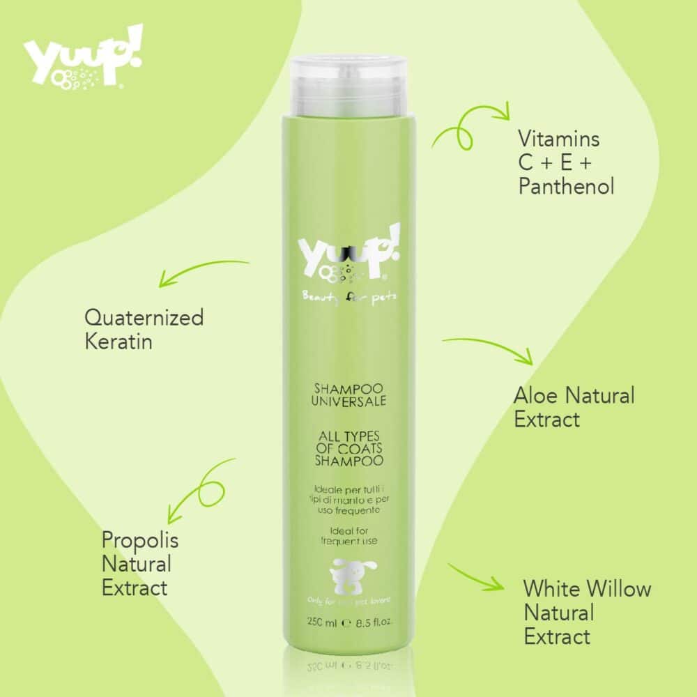 Gentle enough for frequent use and ideal for all coat types, this shampoo cleanses, nourishes, and refreshes with Quaternized Keratin, Vitamins C & E, Panthenol, and purifying extracts of Aloe, White Willow, and Propolis. Healthy, shiny, and soft coats, every day!