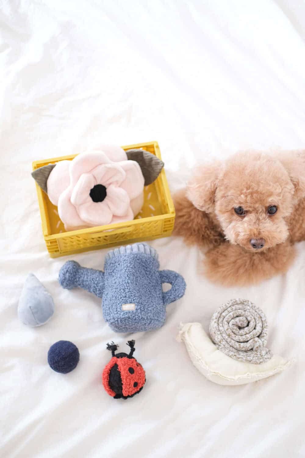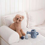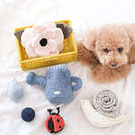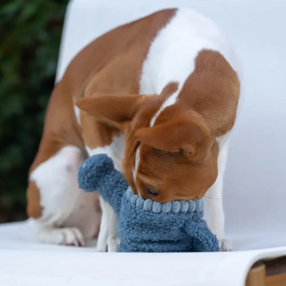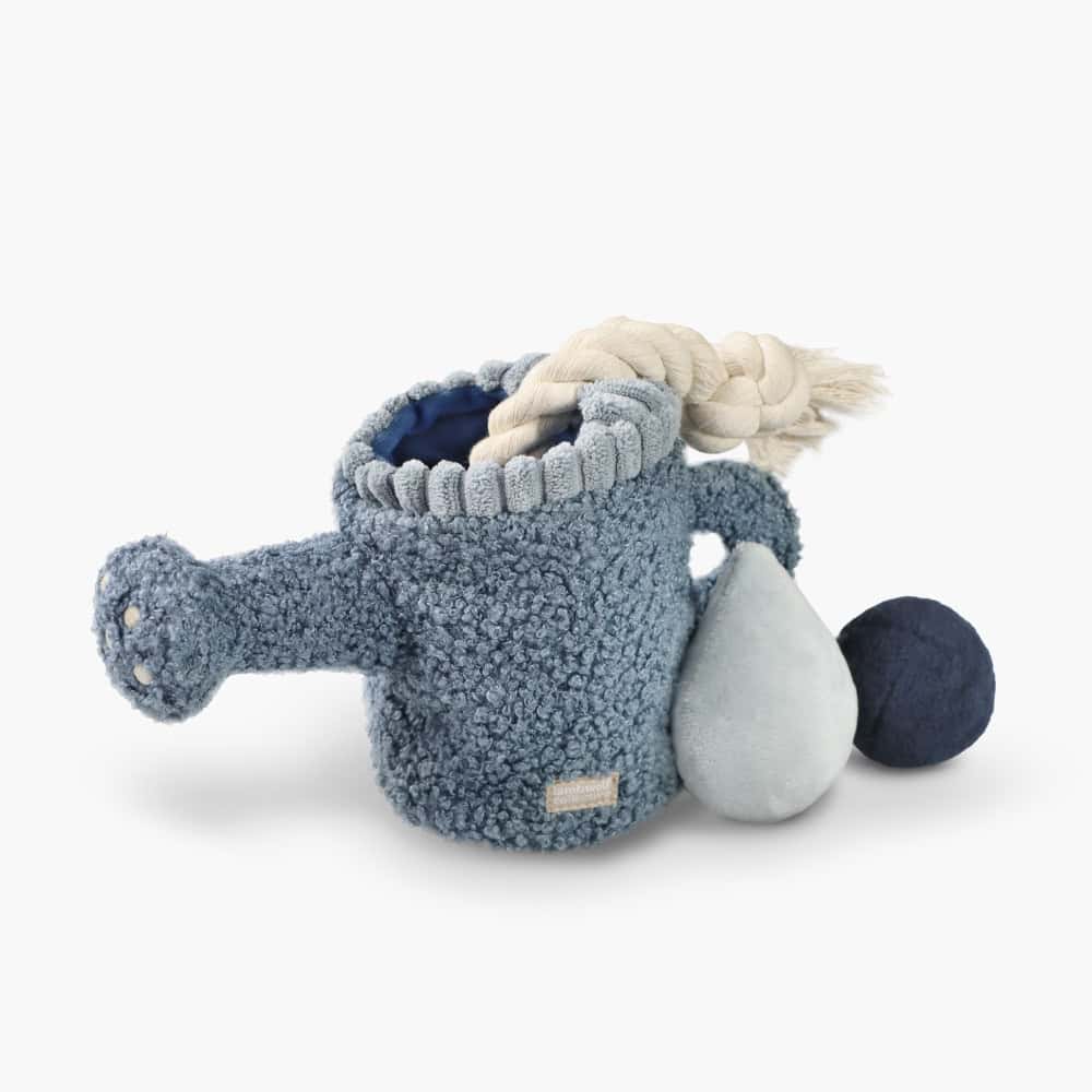 This 3-in-1 Watering Can will entertain your pup for a long while and can be used for multiple snuffle challenges. Featuring a natural cotton tugging rope, a squeaker droplet and a mini bouncy POP ball covered in durable soft fleece, this burrow watering can not only hide treats in the center but offer many elements of fun (another squeaker is hidden in the neck too)!