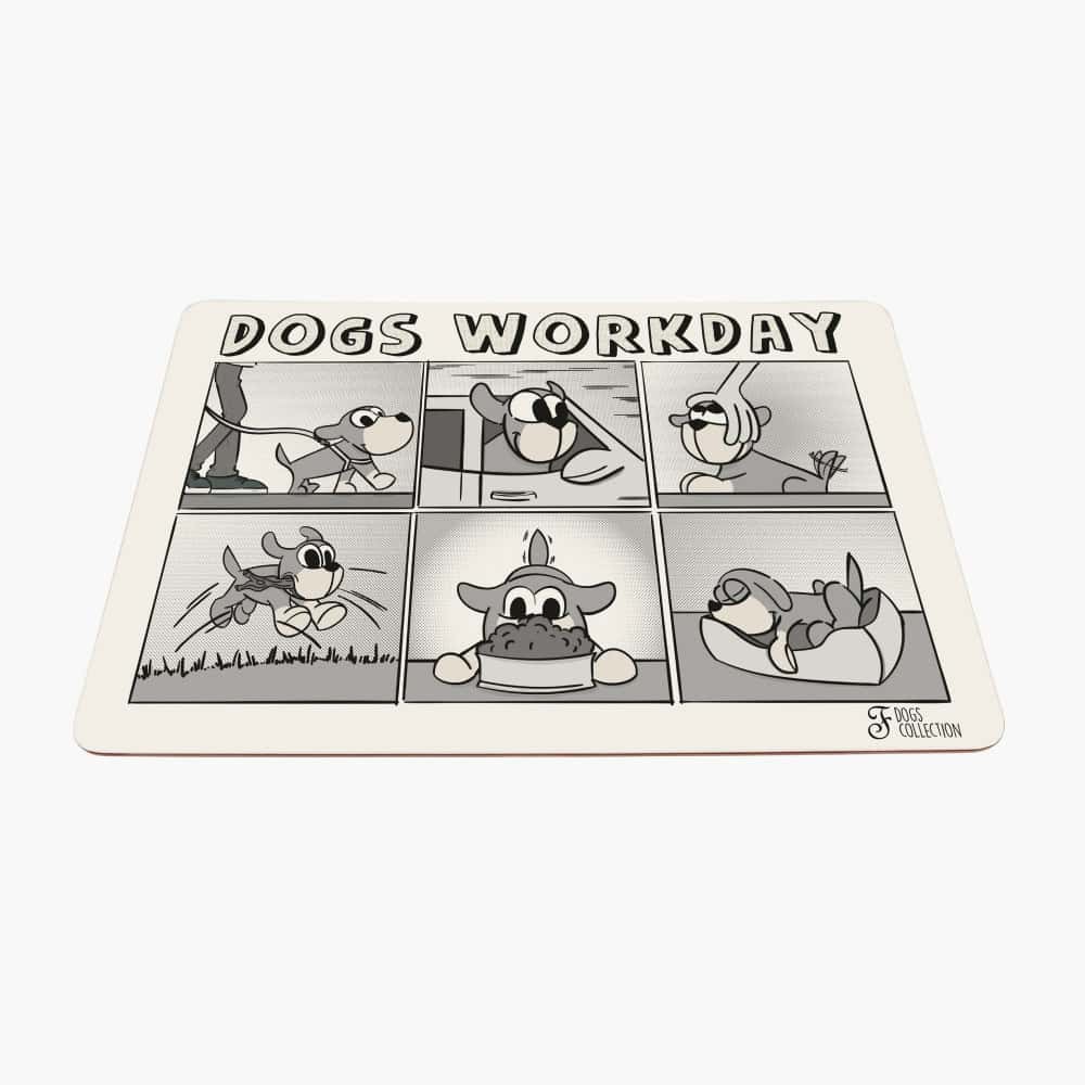 Make mealtime extra delightful with this charming Workday Pet Placemat, available in both dog and cat designs. Each version features a playful comic-style illustration showing your pet’s busy day—from exploring and playing to eating and finally cozying up for a nap.